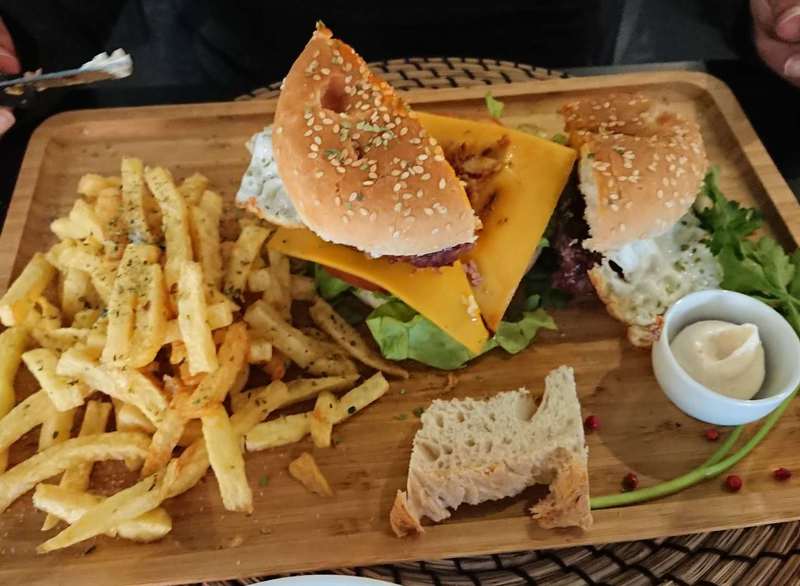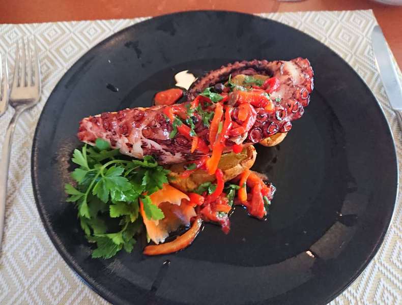 Dann geht es steil hinauf wieder zum Campingplatz. In 1 km Entfernung gibt es ein gutes Restaurant, dort gehen wir heute Abend essen und neben der guten Aussicht bekommen wir auch etwas Tolles auf den Teller!