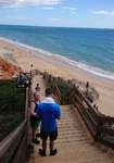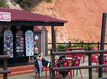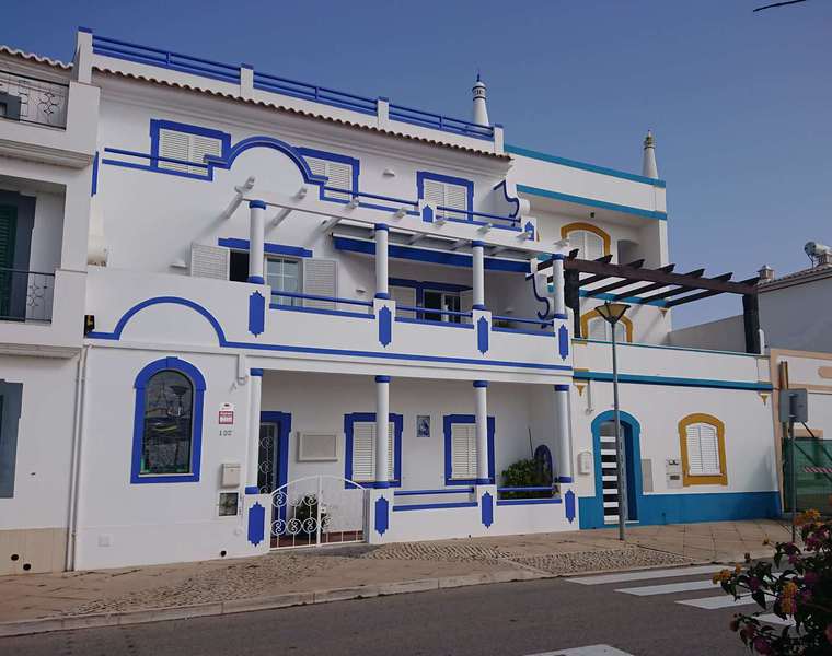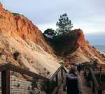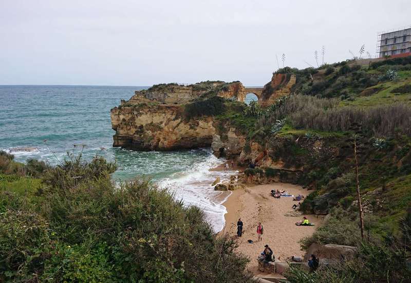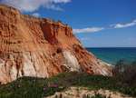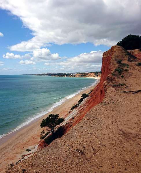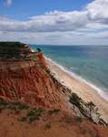 Hier im Ort gibt es keinen Campingplatz, also fahren wir wieder zur Küste und finden einen gut ausgestatteten Stellplatz in Faleria, kurz vor Albufeira. Mit dem Fahrrad erkunden wir die Umgebung und siehe da, wir sind endlich an der Steilküste mit den farbigen Felsen angekommen. Ein herrlicher gelber Sandstrand vor dem blauen Meer und den bunten Felsen dahinter geben ein wunderbares Bild ab.