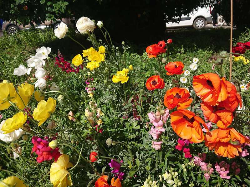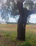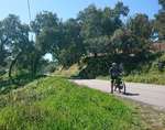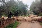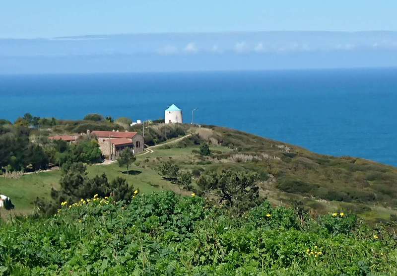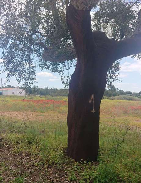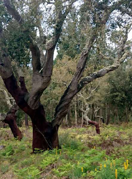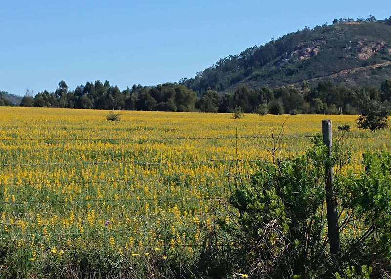 Der Sonntag ist ein Traumtag, Sonne pur von morgens bis abends. Wir fahren Richtung Hügel im Hinterland. Nach 5 km wird die Landschaft richtig schön. Berg auf genießen wir die Korkeichenwälder, dazwischen immer wieder Felder mit gelben Lupinen. Schafherden, Kühe, Ziegen und viel Gegend wechseln sich ab.