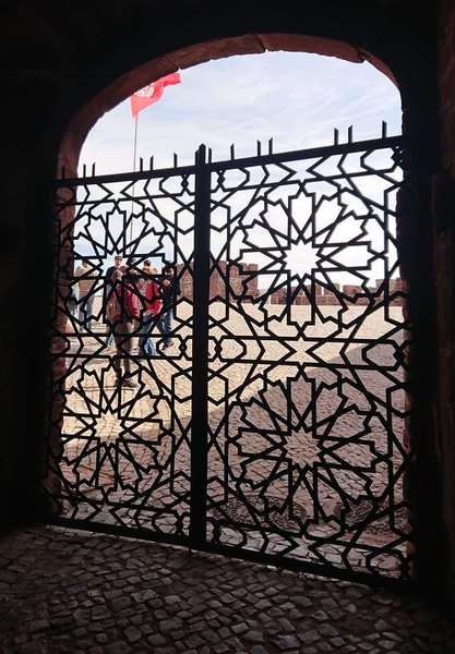 Auf einem Hügel ist eine Kirche aus dem 13. Jahrhundert, sie ist für 3 € zu besichtigen, wird zur Zeit restauriert und der Glockenturm kann auch bestiegen werden. Von hier aus hat man einen tollen Blick über die ganze Stadt, den Fluss und die verschiedenen Brücken, eine davon ist eine alte Römerbrücke. Dort sind auch einige Lokale, die zum Kaffee einladen. Schöne Geschäfte bieten jede Menge Handwerkskunst an. Kork gefällt mir schon lange, eine Tasche und ein paar Sandalen werden mal gleich mitgenommen.