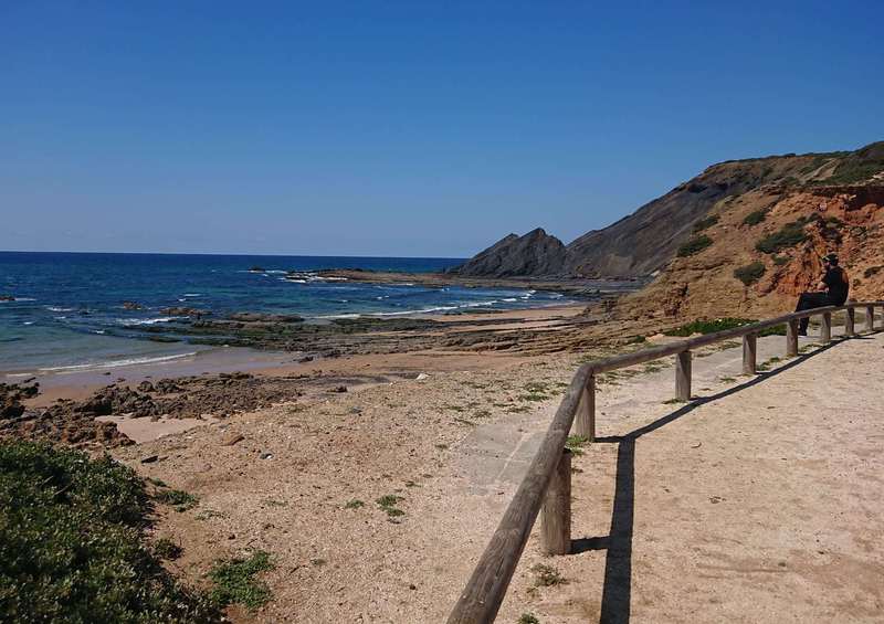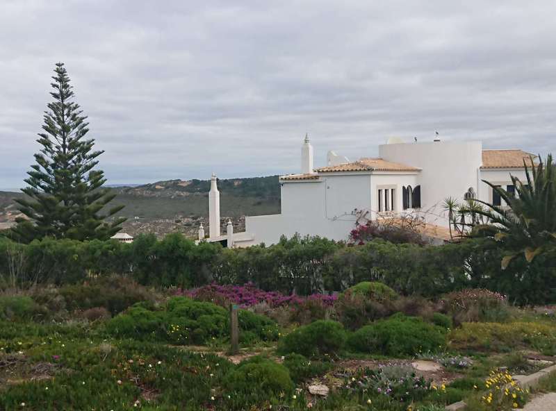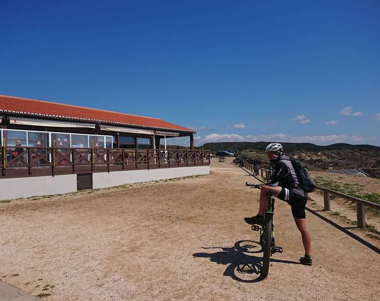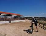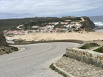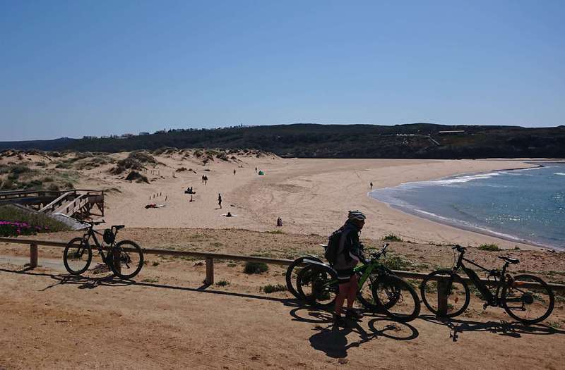 Wir hängen noch einen Tag dran, weil uns die Gegend so gut gefällt. Auf einer steilen Schotterpiste fahren wir an einem Naturschutzgebiet vorbei hinunter nach Aljezur. Um auf die geplante Tour zu kommen, wollen wir durch die Altstadt den Berg hinauf, aber mit solchen Steigungen haben wir nicht gerechnet, wir schieben beide ein paar Straßen, dann wird es wieder fahrbar. Auf einem Hochplateau geht es Richtung Küste. Es reihen sich viele Orte aneinander, teilweise mit sehr edlen Häusern. Ein Ort ist wohl das hiesige Surferparadies, es gibt Surfschulen, Verleih und in der Bucht sieht man auch einige Mutige in die Wellen steigen. Mit viel Auf und Ab beenden wir die Tour wieder in Aljezur, kaufen am Supermarkt noch das Nötigste für das Abendessen ein, denn am Campingplatz gibt es nichts.