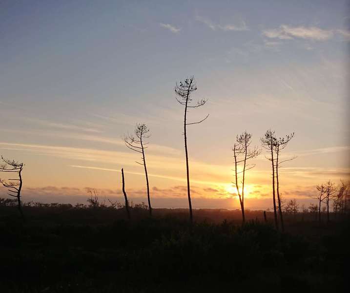 Ein bisschen Radeln ist angesagt. Die ersten 15 km gehen langweilig an der Straße entlang, aber dann führt der Weg Richtung Küste durch ein herrliches Naturschutzgebiet. Leider tauchen über dem Meer dunkle Wolken auf, so dass wir uns nicht zu lange aufhalten wollen. Aber die Kirche von Luz muss sein. Am Camper angekommen fängt der Regen an. Also alles richtig gemacht.