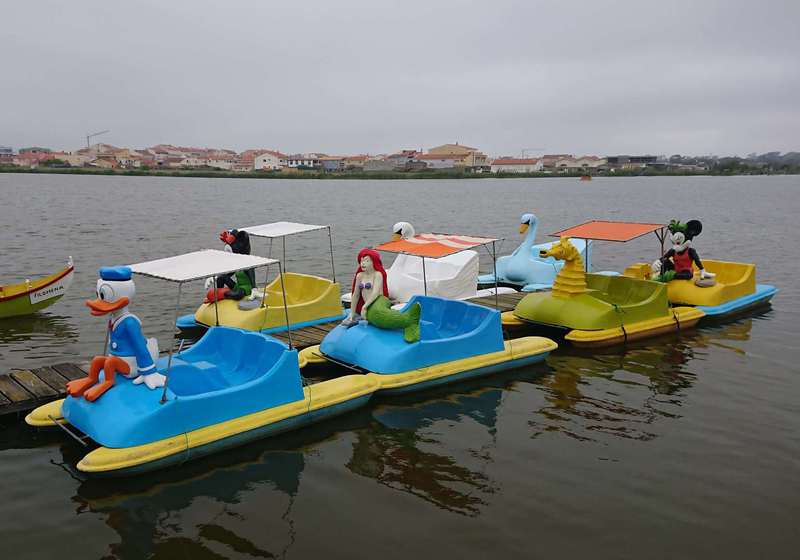 Die Landschaft Richtung Mira ist ziemlich langweilig, aber in Praia de Mira angekommen gibt es einen sehr schönen See mit Wander- und Radwegen, Tretbooten und Strandpromenade. Wir bummeln durch den Ort und gehen in einer Bäckerei Kaffee trinken. Dann wird frisches Brot geliefert, der Lieferwagen fährt in die Einfahrt, im ersten Stock wird eine Tür geöffnet, die ins Leere führt und mit Körben werden die Brote angereicht, sehr interessantes Verfahren. Wie in den letzten Tagen häufiger gehen wir mittags gut essen, die Fischgerichte sind wirklich sehr lecker und immer frisch zubereitet. Abends wird es wieder sehr windig und kalt, wir verziehen uns in den Camper und hoffen auf eine ruhige Nacht. Das Wetter spielt zwar mit, aber am Ostersamstag hat man sich entschieden, Lifemusik am See zu spielen, Beginn um 22 Uhr, Ende um 3 Uhr in der Nacht. Morgen werden wir also umziehen.