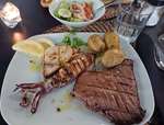 Zurück am Camper stellen wir fest, dass wir hier nicht nächtigen wollen und fahren weiter nach Fuzeta zum Campingplatz. Abends essen wir herrlich beim Portugiesen, Rüdiger einen Hamburger und ich eine Grillfischplatte u.a. mit einem tollen Tunfischsteak, sehr lecker!