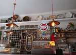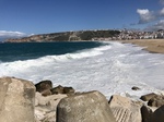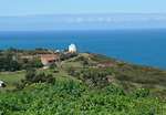 Die Bucht und die Küste sehen wieder richtig interessant aus. Mit dem Rad geht es erstmal Richtung Hinterland, mal wieder mit kaltem Wind und etwas Nieselregen. Nach 5 km biegen wir ab zur Küste und wundern uns über die heftigen Anstiege. Auf einer Schotterpiste schrauben wir uns zu einer Höhenstraße hinauf, der Blick ist fantastisch und einen guten Kaffee gibt es hier oben auch noch. Das Lokal sieht auch so aus, als wäre das Essen sehr gut, allerdings vom Campingplatz aus etwas zu weit fürs Abendessen.