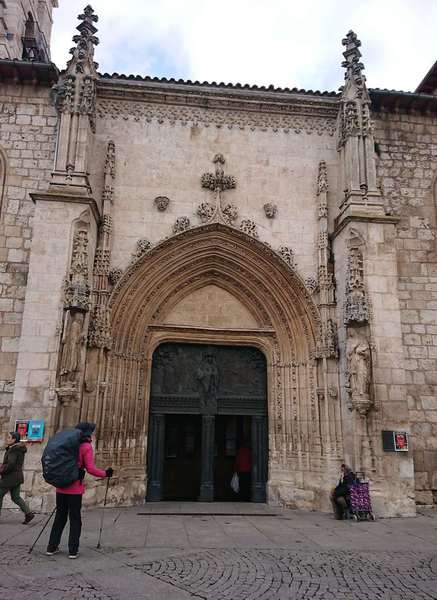 Weiter geht es Richtung Norden. Burgos soll sehr schön sein, also ein neuer Anlauf für einen Städtetrip. Die Strecke bis dahin ist sehr langweilig wie gestern auch schon. Als wir in Burgos ankommen, fängt es tatsächlich schon wieder an zu nieseln. Wir laufen trotzdem los und „frieren“! Es weht wieder ein kalter Wind und wie wir später feststellen liegt Burgos auf 850 Meter Höhe. Das erklärt viel. Die Stadt hat eine riesige Fußgängerzone, bei anderem Wetter sicher sehr sehenswert. Als es richtig anfängt zu regnen, drehen wir um, bis zur Kathedrale schaffen wir es noch nicht einmal.