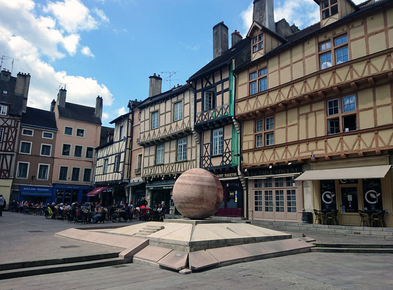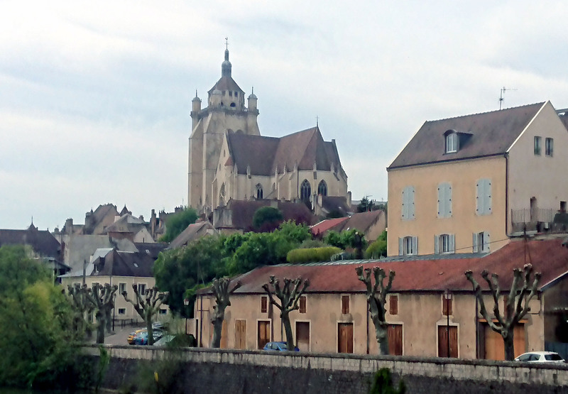 Die Sonne scheint, das müssen wir ausnutzen! Durch den Ort geht es auf einer Bahntrasse ins Land, ganz gemütlich. Wir fahren direkt auf einen Kirchturm zu und den Ort sehen wir uns auch etwas genauer an. Hier waren wir auch schon mal mit Lothar, wir erkennen den Torbogen zur Stadtmitte wieder. Die Landschaft ist lieblich, die Dörfchen sehr gepflegt und immer wieder sieht man ein altes schönes Gebäude. Der Rückweg führt uns am Kanal entlang, es gibt hier sogar noch einige Schleusen, obwohl man fast keine Boote sieht. Zurück in Chalon-sur-Saone besuchen wir noch den Platz vor der Kathedrale, den wir auch noch von Lothars Tour kennen. Und dann nehmen wir beim Inder unser heutiges Essen ein, denn das Abendessen in den Lokalen ist uns eindeutig zu spät. Endlich können wir mal vor dem Camper die Sonne genießen und entscheiden uns für einen weiteren Verlängerungstag, da das Wetter schön bleiben soll.