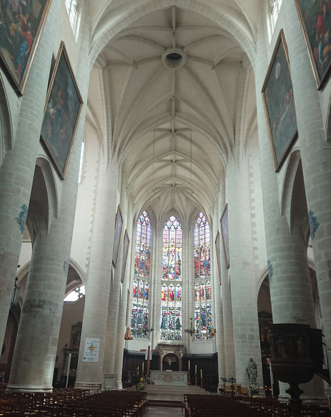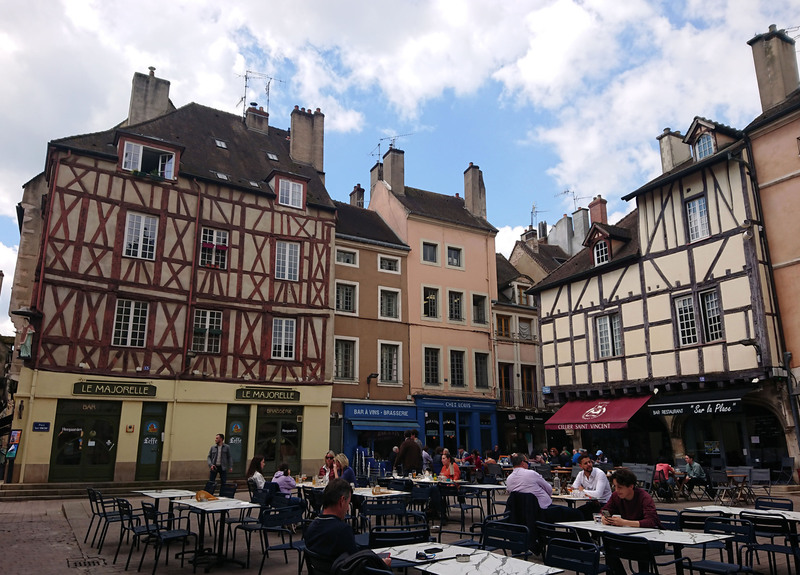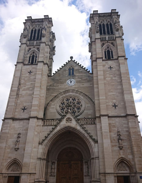 Heute wollen wir uns Dole ansehen, fahren wieder über die Bahntrasse und dann quer Feld ein. Ein bisschen Abenteuer muss ja auch mal sein. Im Wald wird der Weg immer schmaler und dann müssen wir 2 Bäche über Holzplanken bewältigen. Dann erreichen wir Dole, es geht am Doubs entlang bis zur Altstadt. Wie meistens wurde die auf einen Hügel gebaut. Bevor wir den erklimmen, stärken wir uns mit einem Menü. Die Kathedrale ist innen sehr schlicht, aber mal wieder gigantisch hoch und die Orgel ist sehenswert. Durch die kleinen Gässchen erreichen wir wieder den Doubs und sehen uns noch den Stell- und Campingplatz an. Unsere Entscheidung für Parcey war richtig! Abends regnet es mal wieder, pfui!