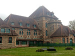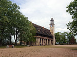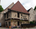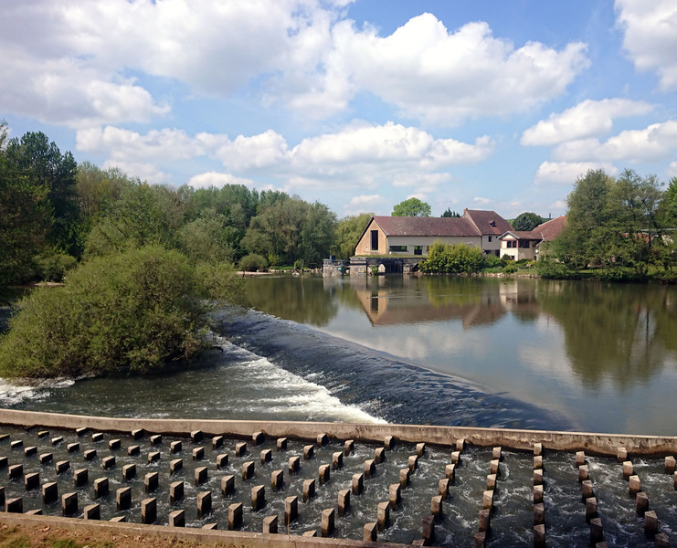 Es ist zwar trübe aber regnet wenigstens nicht. Fahrräder aufbauen und losradeln, dann sehen wir weiter. Diese Gegend wird auch die Kornkammer Frankreichs genannt, entsprechend gibt es viele Felder, Weinanbau auf leichten Hügeln. Nach ca. 10 km kommen wir an einen Kanal mit einem wunderbaren Radweg – einfach schön. Die Strecke führt zurück nach Montlucon und am Fluss Cher entlang radeln wir in der Hoffnung, ein Restaurant für das Mittagessen zu finden. Pech gehabt, nur in der Innenstadt gibt es Lokale. Hinter dem Ort geht es Berg auf Richtung See, dann landen wir in einem Wald und sehen auf einem Hügel eine schöne Kirche. Das müssen wir uns näher ansehen. Das Gelände ist großzügig eingezäunt, am Portal steigen gerade viele ältere Leute aus einem Kleinbus aus. Der Busfahrer deutet uns, dass wir ruhige auf das Gelände zum Fotografieren dürfen und so sehen wir, dass es sich um eine Art Seniorenheim handelt. La Charité ist eine Sozialeinrichtung u.a. für Alzheimer Erkrankte. Den Gebäuden täte etwas Renovierung noch sehr gut, aber es sind schöne alte Bauwerke, eine echte Überraschung. Es wird nirgends als „sehenswert“ ausgewiesen, so haben wir einen Zufallstreffer gelandet.