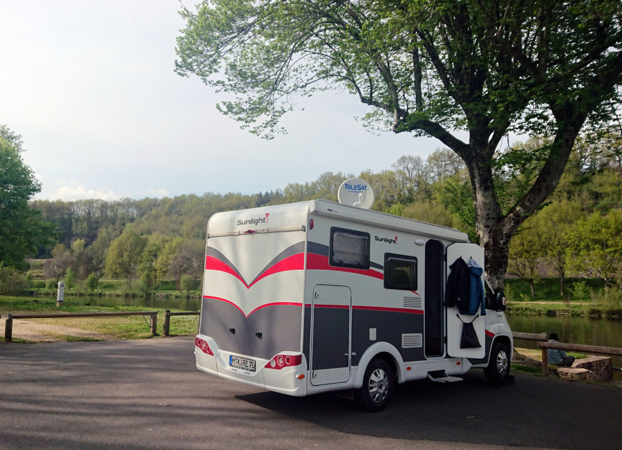 Morgens ist das Wetter noch gut und wir unternehmen eine kleine Radtour. Die Landschaft gefällt uns zum Radeln sehr gut, Weinanbau, Felder und kleine Örtchen. Der Rückweg geht über eine Bahntrasse mit der bekannten leichten Steigung und durch viel Wald. Der Ort und die Gegend gefallen uns sehr gut, nur das Wetter nicht. Vor dem Regen flüchten wir mal wieder und haben uns den Ort Aixe-sur-Vienne ausgesucht. Die Vienne schlängelt sich durch die Landschaft, ach wäre das schön, hier eine Radtour zu unternehmen. Es gibt 2 Campingplätze direkt am Fluss, beide öffnen erst am 1. Mai. Auf einem großen Parkplatz stehen etliche Autos von Anglern, wir stellen uns einfach dazu, kein Problem für eine Übernachtung. Ein Engländer taucht ebenfalls auf und wir unterhalten uns über dies und das. Ein „offenes“ Restaurant gibt es hier nicht, also koche ich abends. Und dann tauchen 5 Radler mit viel Gepäck auf, halten neben unserem Camper und sagen: „sieh mal, aus Frankfurt“. Bei einem Gespräch erfahren wir, dass die 5 aus Frankfurt kommen und mit den Rädern bis Bilbao wollen, jeden Tag zwischen 100 und 130 km und etliche Höhemeter. Sie sind eben noch jung, da kann man so etwas machen. Sie klettern über den niedrigen Zaun vom Campingplatz und machen es sich bequem, soweit es geht. Für den nächsten Tag ist wieder olles Wetter angesagt, also weiter.