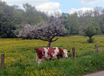 Der 1. Mai bringt das erwünschte Wetter, wir machen eine lange Radtour. Die Landschaft ist unwahrscheinlich schön, gemütlich kurven wir durch die Hügel, einziger Nachteil, es gibt keine Lokale, weder Bäcker noch Cafés und schon gar nicht ein Restaurant. Beim Supermarkt – der Einzige auf der Tour – kaufen wir uns Muffins und zwei Kaffee-Kaltgetränke, das muss reichen. In den Hügeln ist der Wind wieder kühl, wir ziehen Jacken über. Zurück am Fluss wärmt die Sonne, ein herrlicher Tag.