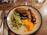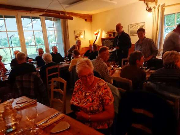 Wie befürchtet ist nach der Nacht der Platz eine Sumpflandschaft, entsprechend dreckig sind wir, als wir endlich losfahren. Nach dem Einkaufen brauchen wir nur 30 Minuten bis zu unserem Ziel. Dort angekommen können wir uns gerade auf den zugewiesenen Platz stellen, dann schüttet es schon wieder. Mittags unterhalten wir uns mit Christine und Paul, die diese Tour vor 2 Wochen von ACSI übernommen haben. Sie leiten bereits seit 20 Jahren ACSI-Touren und wollten eigentlich in Rente gehen, aber immer kommt etwas dazwischen. Nachmittags unterhalten wir uns ausgiebig mit Juliane und Ulrich, um 16 Uhr ist die Begrüßungsrunde und abends werden wir mit einem Bus zum Restaurant gefahren. Das Begrüßungsessen ist vom Feinsten, pro Paar 3 Vorspeisen, dann je nach Wunsch Fleisch oder Fisch mit leckerem Gemüse und eine Nachspeise darf auch nicht fehlen. Alle 30 Reiseteilnehmer sind fröhlich und ausgelassen. Mal sehen, wie die Reise so wird.
