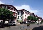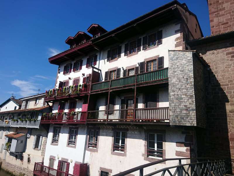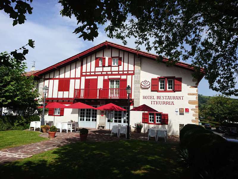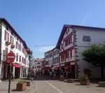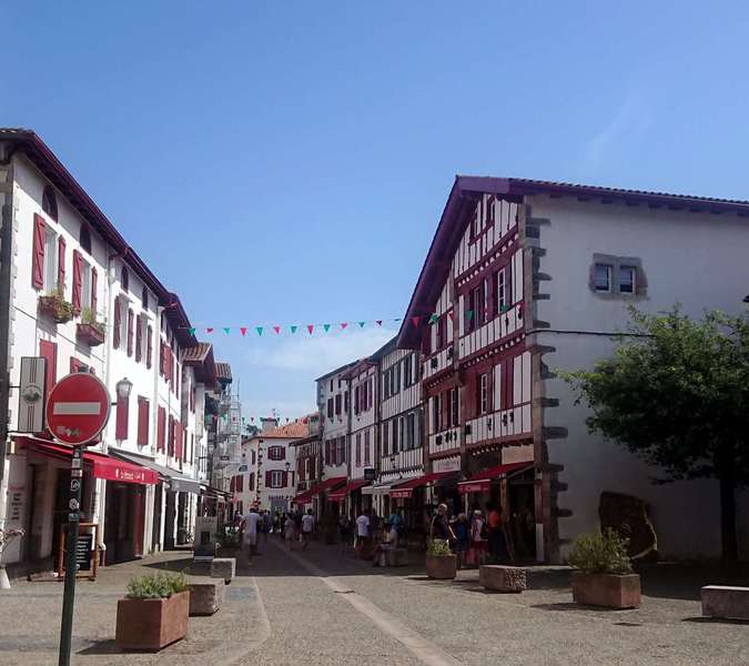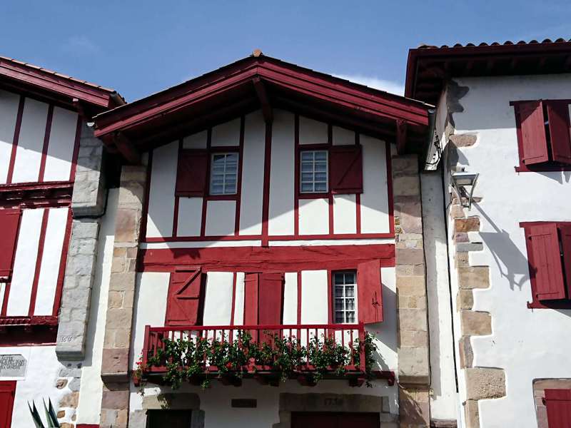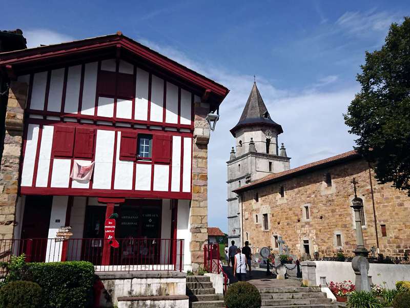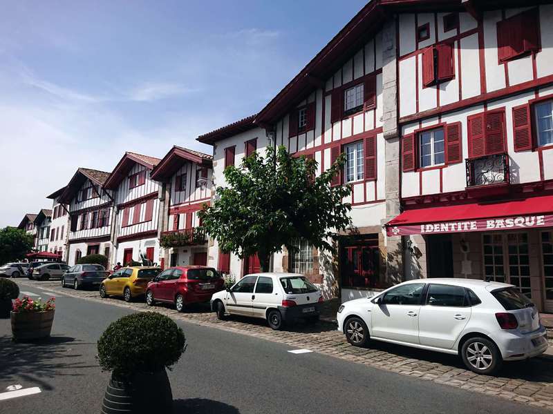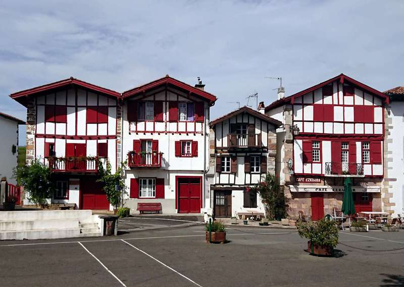 Wir können uns viel Zeit lassen, denn ab 14:40 Uhr dürfen wir erst zum nächsten Campingplatz kommen. Wir suchen uns als Zwischenstopp Ainhoa aus, eines des schönsten Dörfer Frankreichs. Über Land ist nicht viel Verkehr, erst als wir in das Tal einbiegen, wird es voll. Ein kleines Straßendorf mit sehr vielen Parkplätzen, aber als Camper wird das Parken etwas schwierig. Wir finden einen Platz und sehen uns das Dorf mit seinen vielen schönen Häusern gründlich an. Gut, dass die Ferien in Frankreich zu Ende sind, sonst wäre es noch voller.