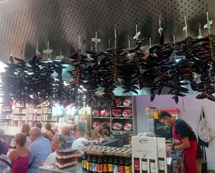 3 Tage lang ist es einfach nur heiß, immer zwischen 30 und 33 Grad. Am Donnerstag fahren wir mit dem Bus nach Espelette und sehen uns die Chilischotenproduktion an.