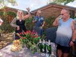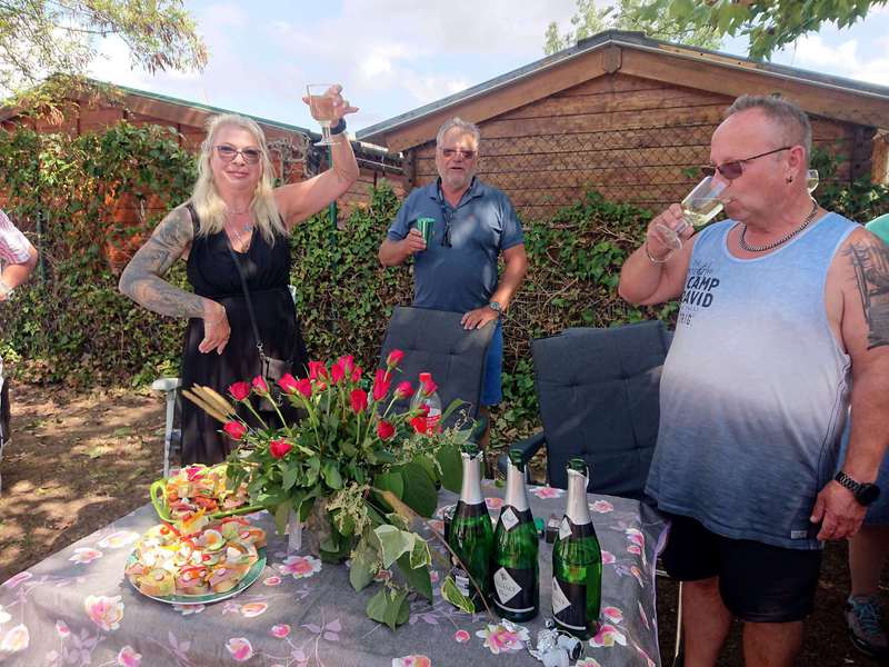 Zurück auf dem CP bekommen alle Handys Unwetterwarnungen. Deshalb verschieben wir die geplante Geburtstagsfeier von Monika und mir auf Mittwoch, der Reisetag könnte für einige zu anstrengend werden. Die Sonne scheint aber herrlich und Mendy kommt mit Musik und viel Trara zum Gratulieren zu Monika. Im Handumdrehen trifft sich die ganze Gruppe, tanzt und trinkt und feiert bis um 18 Uhr die Besprechung stattfindet.