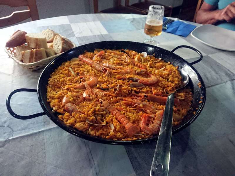 Am Reisetag erleben wir die schöne Pyrenäenlandschaft sehr intensiv. Es geht über kleine Straßen den „Pass de Roland“ hinauf, oben ist eine Gedenkstätte mit herrlichem Blick zurück nach Frankreich. Bergab geht es in Richtung Pamplona, wir sind in Spanien. Auf dem Campingplatz „El Molino“ angekommen, erhalten wir die Nachricht, dass Mendy und Knut heute um 14 Uhr etwas zu feiern haben, es ist der 36. Hochzeitstag, und das an meinem Geburtstag. Es geht mal wieder hoch her. Für den Abend habe ich für Juliane, Ulrich und uns im Restaurant eine Meeresfrüchtepaella bestellt, Morgen bin ich dann mit einer Feier dran.