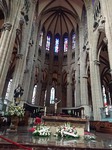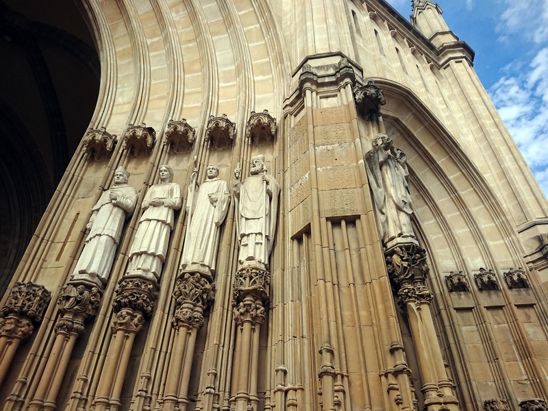 Samstag werden wir mit dem Bus nach Vitoria Gasteiz gebracht, die Hauptstadt des Baskenlandes. Mit 250 Tausend Einwohnern ist es schon eine Großstadt. An der neuen Kathedrale beginnt der Rundgang, die Türme sind noch nicht gebaut worden, aber der Innenraum der Kirche hat gigantische Ausmaße.