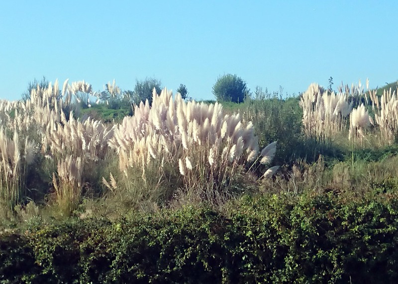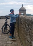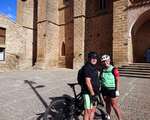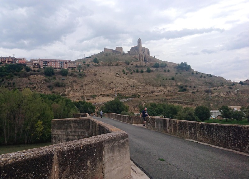 Mittwoch ist es endlich etwas kühler, ideales Radelwetter. Rüdiger hat Schmerzen im Bein, Juliane im Rücken, aber egal, auf dem Fahrrad ist alles gut. Wir kreuzen öfter die Pilgerroute und sind uns einig, dass wir diese Strecke nicht laufen wollen. Mit dem Rad ist es deutlich angenehmer. Am Horizont taucht eine Burg auf, dort müssen wir natürlich hinauf und staunen über die riesige Anlage mitten in der Landschaft. Danach wird es etwas hügeliger und abwechslungsreicher, die Pause gibt es in Puente del Reina. Ein typischer Pilgerort mit einer sehr alten Steinbrücke über den Fluss, von der hiesigen Königin für die Pilger erbauen lassen. Nun ist es bis zum Campingplatz nicht mehr weit.