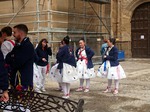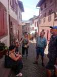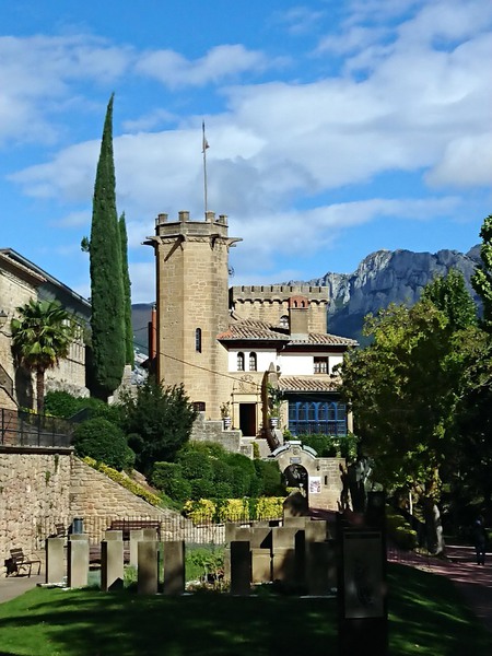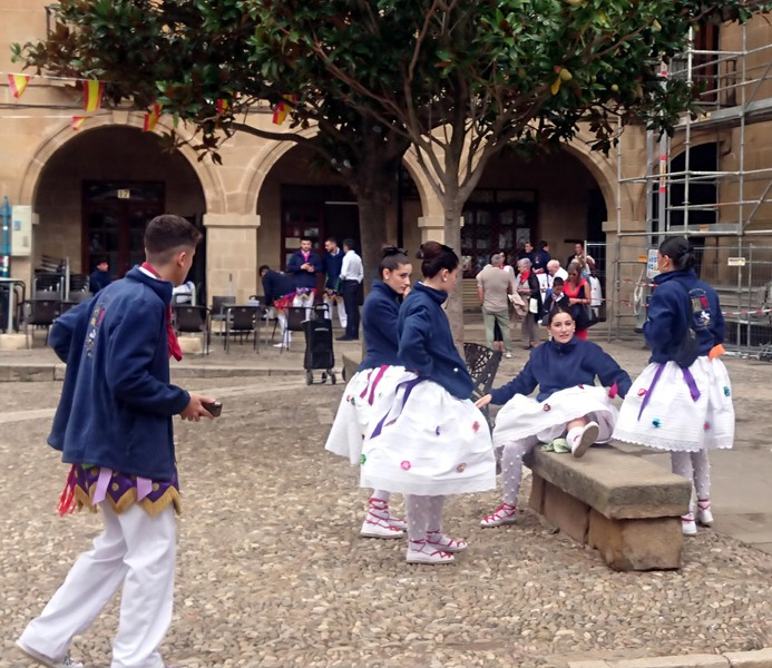 Sonntag, freier Tag für eine Radtour. Wir fahren 3 schöne Orte an, Kirche und Burg sind immer ganz oben. Im letzten Ort bereitet sich die Dorfjugend auf eine Tanzvorführung vor, leider erleben wir nur die Proben, aber es sieht sehr überzeugend folkloristisch aus. Dann fahren wir weiter. In Haro machen wir noch den Abstecher auf den Marktplatz, trinken noch etwas, während es gerade mal einen ordentlichen Regenguss gibt. Abends ist nach der Besprechung die Bergfestveranstaltung mit Wein und Häppchen.