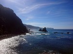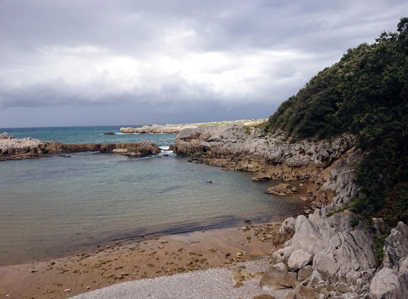 Samstag ist endlich das Wetter besser. Radfahren kann man hier vergessen, also laufen wir nach Islares, dort gibt es auf jeden Fall einen Kaffee und beim ersten Rundgang durch die Bucht haben wir ein gutes Restaurant entdeckt. Dort hin geht es heute Mittag zu Fischsuppe, gegrilltem Fisch, Steak und Muscheln. Ein gepflegtes Restaurant am „Ende der Welt“. Zurück am Strand sehen wir allmählich die Ebbe eintreten, aber bis zum nächsten Ort kann man immer noch nicht laufen. Dafür gibt es nur ein Zeitfenster von ca. 2 Stunden, dann muss man zurück sein. Mal sehen, was wir Übermorgen mit dem freien Tag veranstalten.