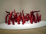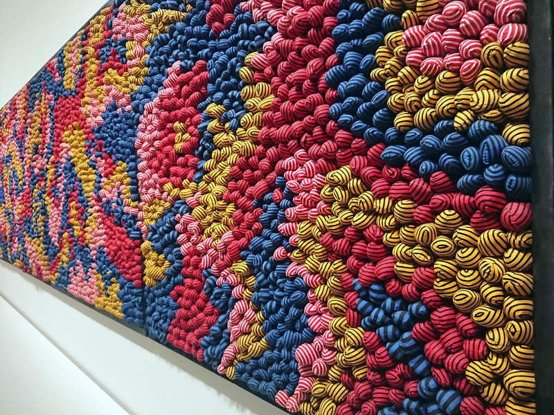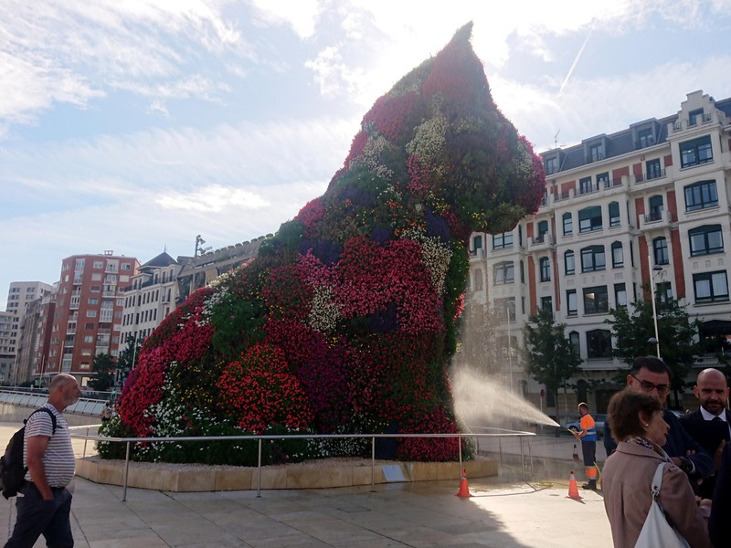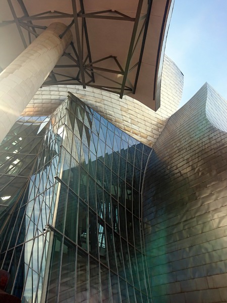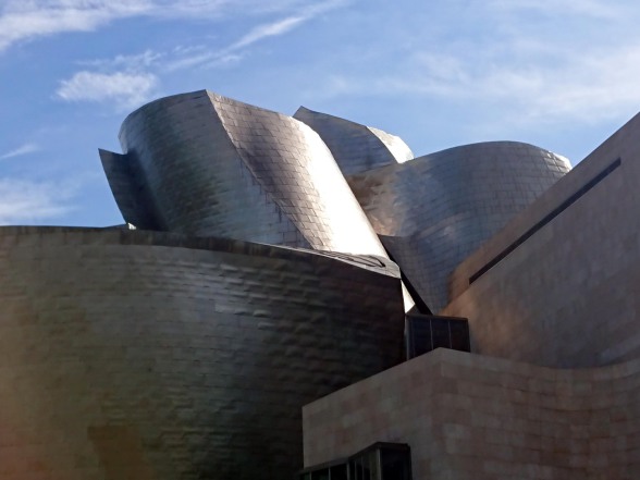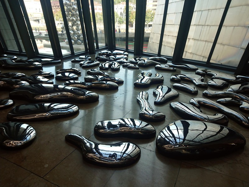 Mittwoch wird Bilbao besucht. Der Busfahrer ist der gleiche Chaot wie vorgestern. Man hat das Gefühl, dass er sich sehr gerne mal verfährt, aber was soll’s! Am „Guggenheimmuseum“ werden wir „freigelassen“, erst ein kleiner Rundgang um das Museum. Mit einem Ticket für 5 € werden wir hineingelassen. Große Säle mit riesigen Bildern, teilweise nur mit 2 Farben, also genau unser Ding. Schräge Skulpturen, bemalte Figuren etc, in jedem Raum etwas anderes Buntes. Mit dem Fahrstuhl geht es nach oben. Im 2. Stock soll es um „Picasso“ gehen, leider geschlossen. Also durchlaufen wir noch den 3. Stock und entdecken anschließend im Erdgeschoss die riesigen Metallinstallationen, durch die man wie in einem Labyrinth laufen kann.