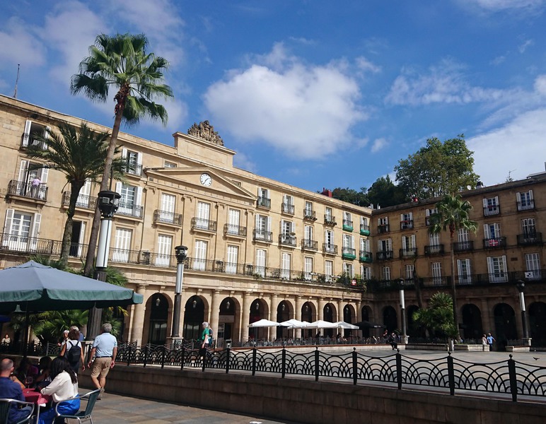 Donnerstag ist der letzte Ausflugstag, es geht nach San Sebastian. Wir haben endlich mal eine deutschsprachige Stadtführung, eine sehr nette und engagierte Frau. Warum hat es nicht öfter so sein können. Der Bus fährt in den unterirdischen Busbahnhof, sehr imposant für eine kleine Küstenstadt. Das Stadtzentrum hat sehr edle Häuser, Plätze, Läden und Tapabars. Man kann sich sehr gut orientieren. Man sieht entweder die Kathedrale oder in die andere Richtung die alte Kirche in der Altstadt. Auf der einen Seite geht es zur Atlantikbucht, die andere Seite ist dem Fluss vorbehalten. In der Altstadt genießen wir natürlich ein paar Tapas. Dann finde ich endlich mal eine Hose, die mir gefällt, es bleibt nicht bei einer Hose! Also eine tolle Stadt mit Essens- und Einkaufsmöglichkeiten der besonderen Art.