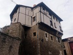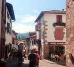 Montag regnet es, mal sehen wie lange. Aber als positives Zeichen erscheint ein herrlicher Regenbogen über den Bergen. Das Wetter ist aber so unbeständig, dass wir uns nur zu einer kurzen Radtour zum Markt in Saint Jean Pied de Port aufraffen können. Auf der Straße in den Ort hinein ist der Teufel los, alle wollen zum Markt. Mit den Rädern geht das noch besser als mit dem Auto. Dann bummeln wir durchs Örtchen.