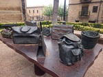 Donnerstag ist der große Ausflug nach Pamplona. Mit dem Bus geht es zur großen Stadt, eine Stadtführerin erwartet uns bereits. Die Altstadt hat enge Gassen – wie meistens in den Altstädten – und überall sind Hinweise auf das berühmte Stierkampffest, dass immer im Juli stattfindet. In den Straßen sieht man große Einlässe für Metallpfosten, um den Laufweg der Stiere abzusichern. Das Pflaster wird für die Tiere nicht angenehm sein. Dann geht es – nach einer Kaffeepause im berühmten „Cafe Iruna“ zur Stierkampfarena. Mit vielen Erklärungen, Videos und Bildern kann man sich das Treiben gut vorstellen. Wenn die Arena voll besetzt ist, muss die Stimmung gigantisch sein.