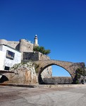 Die meisten der Gruppe entspannen am nächsten Tag, dösen vor sich hin. Mit Ulrich setzen wir uns auf die Räder und wollen Castro Urdiales fahren. Da wir die Hauptstraße meiden wollen, kämpfen wir uns über den Pilgerweg, etwas steinig, aber wenigstens ohne Autoverkehr. Das letzte Stück geht es parallel zur Straße über einen Schotterweg, dann passiert es, Ulrich stürzt. Ihm ist eine Fliege hinter die Brille geflogen, das reicht. Ein paar Schürfwunden sind die Folge. Noch ein kurzes Stück, dann erreichen wir eine Apotheke. Desinfektionsmittel und Verband wird gekauft, die Apothekerin zeigt uns den Weg zum Notfallarzt, einmal quer durch die Stadt. Dort angekommen kann man sich wirklich nur über das Gesundheitssystem in Spanien wundern, sehr freundlich, schnell und unkompliziert. Verbunden geht es zur Strandpromenade, eine Tapasbar bietet wieder alles Leckere, was man sich wünschen kann. Dann genießen wir noch den hübschen Ort mit schönem Hafen und Badebucht und radeln – nun doch über die Straße – wieder zurück.