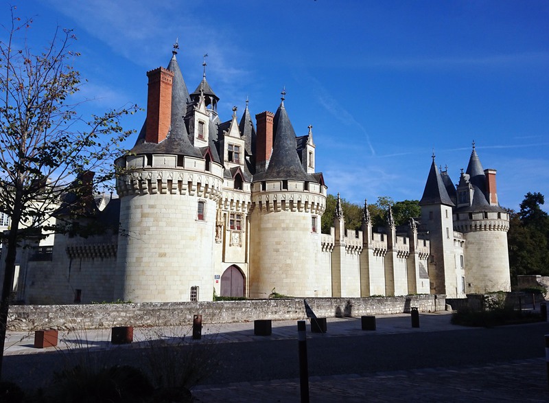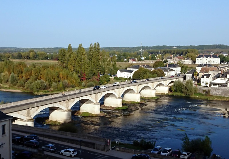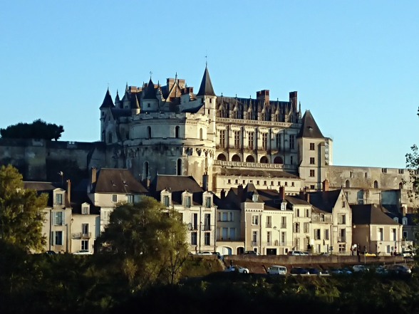 Als Campingplatz haben wir uns einen Platz auf der „Loire“-Insel bei Amboise ausgesucht. Der Platz ist groß, hat bis Ende November geöffnet und von dort aus ist die Stadt gut zu Fuß zu erreichen. Abends gehen wir nur bis zur „Loire“-Brücke, dort ist ein nettes Lokal mit Blick auf das Schloss. In der Dämmerung wird das Schloss angestrahlt, immer mal in anderen Farben – etwas kitschig, aber das muss wohl so sein.