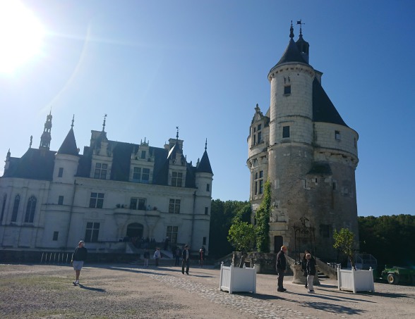 Der Start heute Morgen führt uns quer durch das Freizeitgelände „Futuroscope“, riesig, aber zum Glück ist nicht viel los. Um 11 Uhr kommen wir in Chenonceau an, endlich eine Abwechslung nach der langweiligen Strecke durch Felder. Die Parkplätze sind riesig und sogar kostenlos. Es gibt spezielle Plätze für Camper und Busse. Davon stehen auch schon etliche dort. Von dem Schloss haben wir bei unserer Radtour nur sehr wenig gesehen, deshalb besichtigen wir es nun gründlich und sind erstaunt über die vielen Zimmer in allen Farben, die man sich vorstellen kann. Teppiche an den Wänden, protzige Gemälde und Himmelbetten.