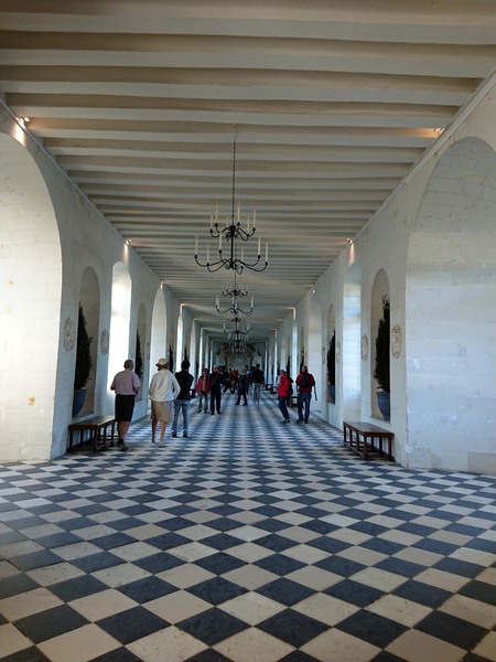 Im 2. Stock kann man die Königsgemächer und die vielen Gästebereiche bewundern, bis auf einige wenige Räume alles leer. Damit es nicht völlig kahl aussieht, hat man Wandteppiche und gigantische Gemälde aufgehängt. Im 1. Stock sind etwas mehr Räume möbliert. Auch eine Küche ist vorhanden, aber bei weitem nicht so schön wie in „Chenonceau“. So kämpft man sich durch endlose Gemächer, bis es einem reicht.