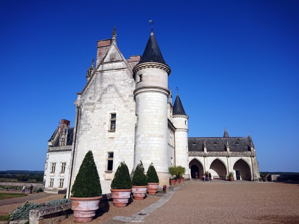 Am Samstag wollen wir uns das Schloss ansehen, fahren mit dem Fahrrad ins Zentrum von Amboise, finden aber keinen radfahrtauglichen Zugang zum Schloss. Also wird die Besichtigung verschoben und wir fahren lieber etwas länger mit dem Rad. Die Landschaft ist teilweise sehr langweilig, die Orte sind ausgestorben und so essen wir irgendwann unser Butterbrot. Erst in Amboise kehren wir ein, da gibt es nämlich Lokal in Massen.