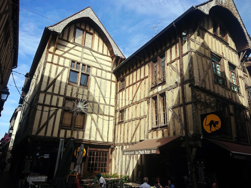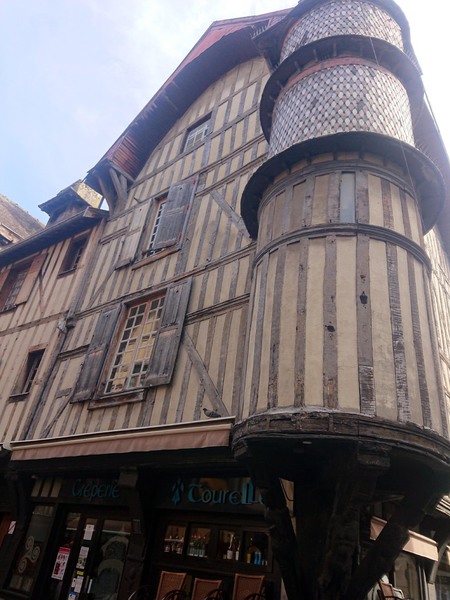 Dienstag machen wir eine Radtour durch wiederum langweilige Gegend, viele Felder und winzige Dörfer ohne alles. Der 2. Teil der Tour ist interessanter, es geht durch eine Seenlandschaft und am Kanal entlang. Nach 50 km kommen wir in Troyes im Zentrum an. Wie versprochen gibt es hier kleine Gassen mit außergewöhnlichen Fachwerkhäusern. Man muss noch einiges an Geld investieren, damit die Altstadt richtig attraktiv wird, aber auf jeden Fall sehenswert.
