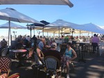 Den Sonntag nutzen wir für eine Radtour zur Düne und zum ewig langen Strand von Arcachon. Die Düne ist tatsächlich gigantisch hoch, wird aber von Heerscharen von Menschen besucht, da muss ich nicht mitpilgern, aus der Ferne sieht es auch sehr schön aus. In dieser Gegend hat es vor nicht allzu langer Zeit gebrannt, deshalb sind einige Straßen gesperrt, also fahren wir an der Hauptstraße entlang, aber auf guten Radwegen. Im Hafen von le Tech gibt es endlich auch einige Lokale, allerdings werden hier nur Austern angeboten, nichts für uns. So fahren wir weiter an der Promenade von Arcachon entlang. Ein Restaurant ist voll, edel und teuer, aber wir werden satt. Hier brodelt noch das Leben, auch Anfang Oktober. Zurück auf dem Campingplatz genießen wir noch etwas den Pool.