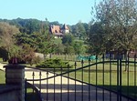 Am Dienstag ist es bedeckt, gegen Mittag könnte es regnen. Wir fahren mit dem Rad einfach mal los, die Landschaft ist schön hügelig, abwechslungsreich und sehr einsam. Es gibt fast keine Orte, also auch keinen Kaffee. Dann fängt es an zu regnen, zum Glück ist hier gerade ein winziges Örtchen mit einer Bushaltestelle, hier stehen wir wenigstens im Trockenen. Es dauert nicht lange, bis der Regen aufhört. Der Ort ist heute etwas belebter, wir beschließen heute Abend in die Pizzeria zu gehen. Um 18 Uhr ist zwar schon offen, aber zu essen gibt es erst ab 19 Uhr etwas. Also gehen wir noch zu der Burg auf dem Felsen. Ein beeindruckendes Gemäuer, dann stehen wir vor einem großen Tor. Ein Jaguar fährt vor, Kennzeichen aus Monaco, das Tor schwingt auf, der Wagen verschwindet. So sieht also ein Burgfürst aus. Die Pizza schmeckt übrigens hervorragend, Ziegenkäse mit Honig und Schinken.