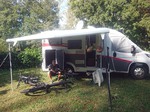 Eigentlich wollten wir auf einem kleinen Campingplatz an einem Schloss ein paar Tage stehen, aber der Reihe nach, eine Stunde verlieren wir im Stau bei Bordeaux. Endlich in der Provinz angekommen wird noch eingekauft und getankt, dann finden wir auch den Weg zum Schloss. An der Hotelrezeption fragen wir nach dem Campingplatz, den hätten wir ohne Hilfe nicht gefunden. Er liegt direkt am Golfplatz und an einem See, ist aber bereits komplett eingemottet. Also suchen wir eine Alternative. 5 km zurück ist ein kleiner Ort mit einer riesigen Festung auf einem Fels, dort werden wir auf dem Camping Municipal noch fündig. Eigentlich sollte heute Schluss sein, aber für 2 Tage dürfen wir hier noch stehen. Der Ort bietet eine alte, für den Ort viel zu große Kirche, eine alte Markt- und Waschhalle, keine Lokale, nur eine Dorfbar. Hier können wir wenigstens einen Kaffee und ein Bier trinken. Zurück am Camper wird gegessen.