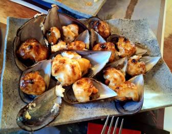 Den Nieselregen lassen wir hinter uns. Es kommt sogar mal die Sonne raus und die Küste erreichen wir bei schönem Wetter. Leider war es das bis zum Mittag, dann wird es wieder trübe. Wir machen einen kleinen Strandspaziergang und reservieren uns für abends einen Tisch im Restaurant. Der Campingplatz ist recht groß, gut ausgestattet und liegt direkt am Meer. Von der Eisenbahn, die hinter dem Campingplatz verläuft, bekommen wir nur wenig mit. Also freuen wir uns morgen auf eine kleine Radtour. Und im Restaurant entscheiden wir uns für 3 leckere Tapas, Krabben in Chiliöl, Muscheln in Weinsoße, Seranoschinken mit geröstetem Brot, sehr lecker.
