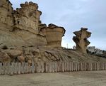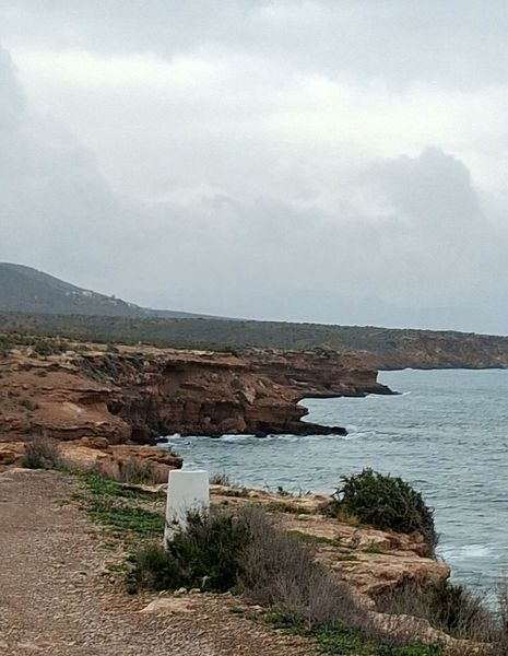 Die Nächte sind mild, dafür regnet es immer wieder. Wenigstens ist es nicht so windig wie am letzten Standort. Was wir heute machen? Wir wissen es noch nicht, eigentlich wollten wir etwas radeln. Vielleicht heute Nachmittag. Um 11:30 Uhr hört es auf, feste zu regnen und wir schwingen uns auf die Räder. Die Pfützen auf der Straße sind riesig. Wir fahren an der Küste entlang Richtung „Sierra de las Moreras“, eine Felsenlandschaft, wild und einsam.