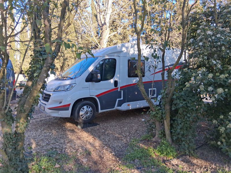 Die Rezeption öffnet erst um 15 Uhr, aber man kann sich einen Platz aussuchen und dann später anmelden. So getan gehen wir dann noch eine kleine Runde um den Campingplatz, sehen uns die kaputte Brücke von Avignon an.