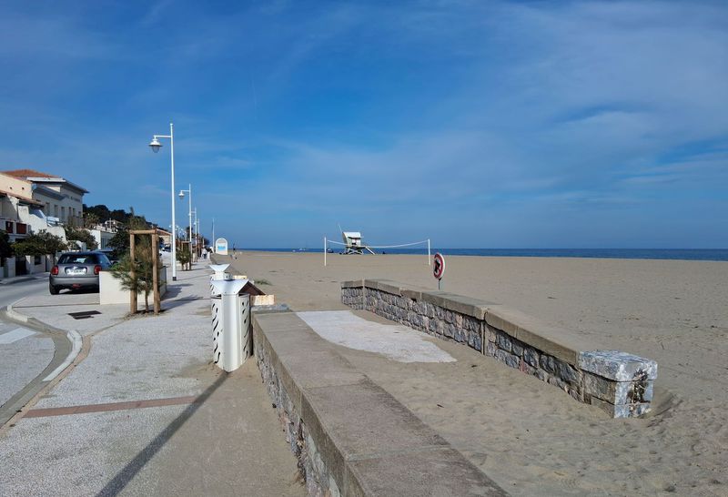 Am Strand entlang geht es in Richtung Norden. Vorsaison bedeutet, dass hier alles leer ist, man kann die Strandpromenade voll ausnutzen. Am Fluss entlang geht es etwas ins Hinterland. Hier gibt es jede Menge Gemüseplantagen. Es duftet nach „Grün“. Mit der Brücke über den „Totdera“ landen wir in Blanes.