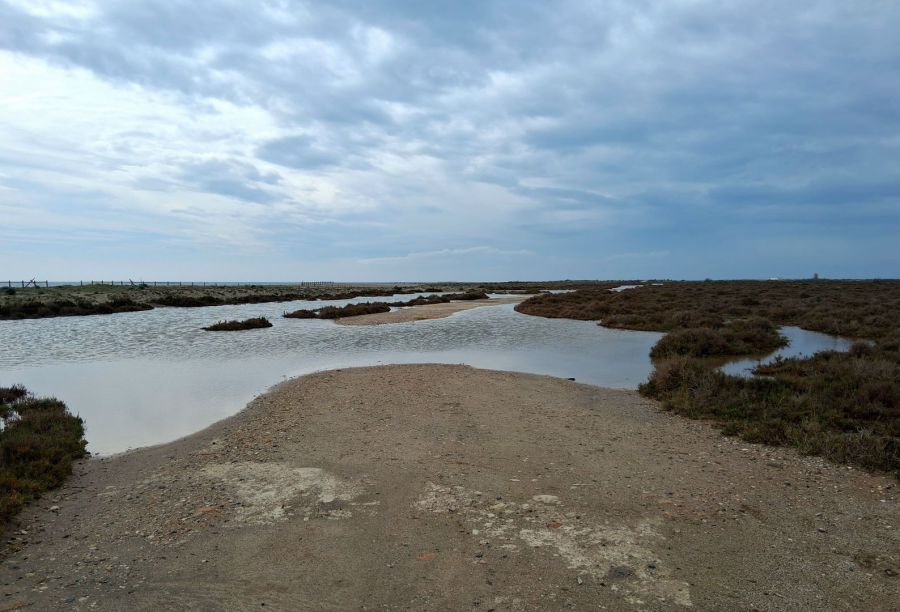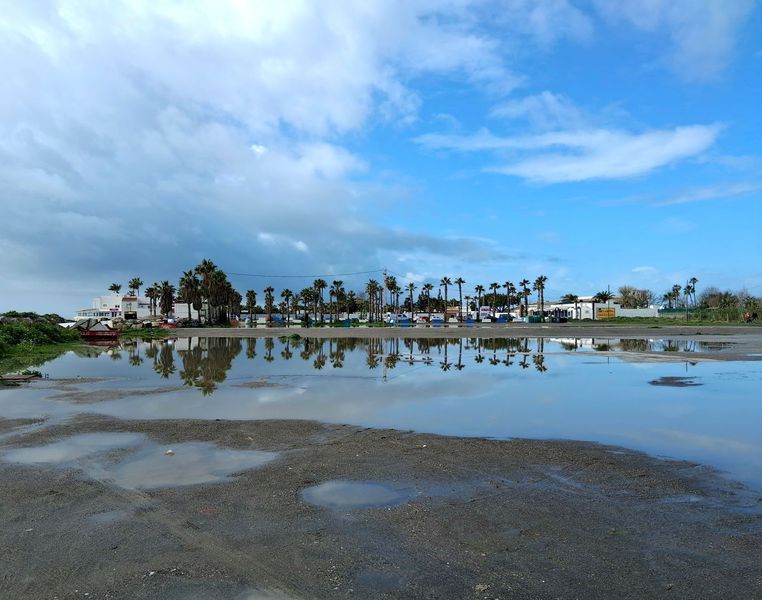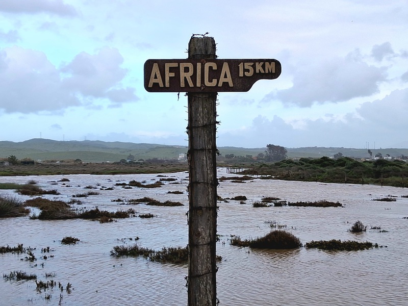 In der Nacht gibt es nach einem Gewitter Starkregen, es prasselt und stürmt. So sieht es auch am Morgen aus. Als wir den Wagen startklar haben, freuen wir uns über eine Regenpause. Wir können noch in Ruhe einkaufen und tanken und auf der Autobahn erleben wir wieder sintflutartige Regenfälle. 200 km mit jeder Menge Wasser. In Tarifa fahren wir die Adresse an, wo man die Gasflaschen auffüllen soll, leider ohne Erfolg, hier gibt es nur spanische Gasflaschen. Noch 3 km, dann sind wir auf dem Campingplatz. Wir sind von unserer Reisegruppe die dritten, so können wir uns noch einen Platz aussuchen, der nicht total abgesoffen ist. Der sehr heftige Sturm trocknet aber auch diese Wassermassen nicht ab. Abends gehen wir in das Bistro und essen eine dunkle Paella.