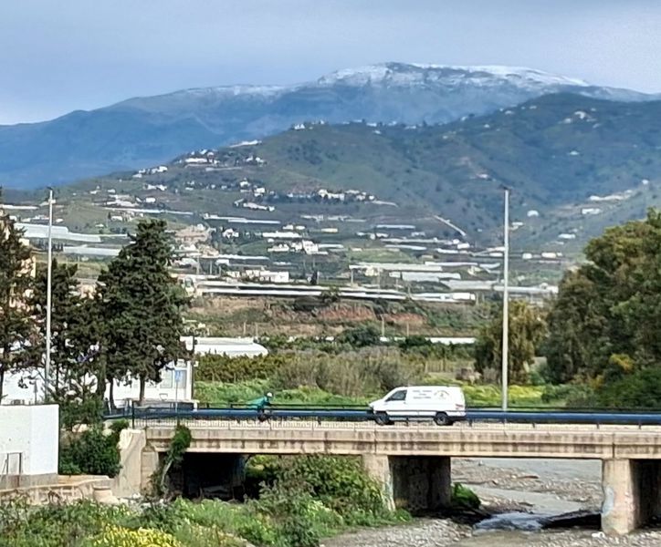 Wir starten noch im Trockenen, aber auf der Autobahn beginnt der große Regen, die ganze Fahrt bis zum nächsten Campingplatz. Unterwegs sehen wir, dass es in den Bergen bei Granada ordentlich geschneit hat. Auf der Fahrt wechseln sich Tunnel und Brücken dauernd ab und Steigungen sind auch zu überwinden. In Torre del Mar angekommen landen wir auf einem Parkplatz vor dem Campingplatz, allerdings gibt es keinen Zugang zum Platz, alles steht unter Wasser. Ich checke uns ein und lasse mir den Weg zum Platz erklären, einmal komplett um den Platz herum. Während einer Regenpause, die keine dauerhafte ist, gehen wir Richtung Ort und kehren zu Tapas und Bier ein.