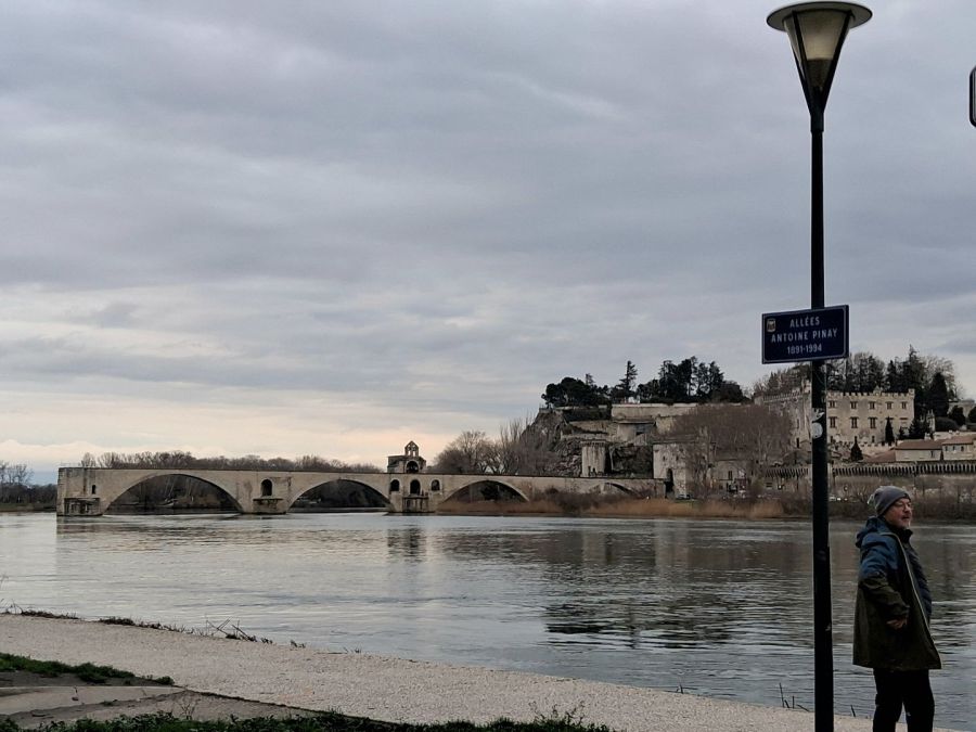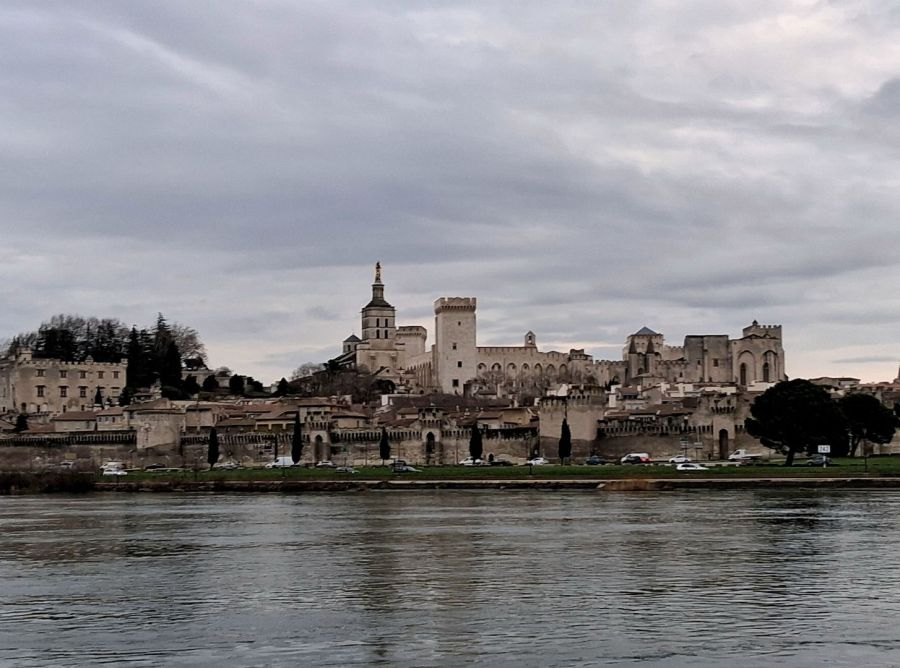 Die ersten 30 km geht es hügelig durch das „Jura-Gebirge“, sehr schöne Fahrt. Auf der Autobahn übernehme ich das Steuer und fahre bis kurz hinter Lyon. Selbst die Fahrt durch die Stadt geht recht reibungslos. Während der Fahrt ruft der Hautarzt aus Kelkheim an und gibt für das kommende Jahr grünes Licht, er hat alle schädlichen Stellen an meiner Schläfe erwischt, also alles in Ordnung. Das Wetter wird deutlich besser, es ist wärmer und die Sonne zeigt sich hin und wieder. Um 14:30 Uhr kommen wir in Avignon an.