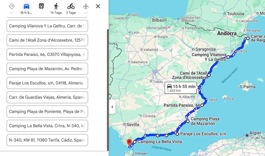 Rüdiger filmt einige Strecken, das ist natürlich noch besser. Zurück auf dem Campingplatz bauen wir die Markise und den Windschutz ab, denn jetzt ist alles trocken, wer weiß, wie lange noch. Abends gehen wir nochmal Tapas essen!