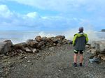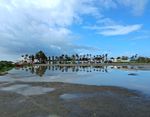 In der Nacht hat der Regen wieder auf das Dach getrommelt, morgens sehen wir große Seen vor dem Camper. Die Sonne kommt zwar raus und scheint sehr hell, aber an den Palmen sieht man den bereits heftigen Wind und am Horizont neue Regenwolken. Also räumen wir die Stühle und die Fahrräder rein, solange es noch trocken ist. Der grobe Sand auf dem Platz haftet bestens an den Schuhen, also saugen und putzen. Dann gibt es einen kleinen Spaziergang zum Strand und zurück am Platz werden die Schuhe unter dem Wasserhahn vom Schlamm befreit. Morgen hoffen wir, Richtung Süden vielleicht etwas Wetterberuhigung zu erwischen.