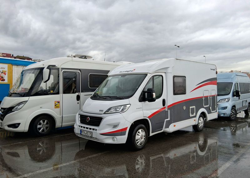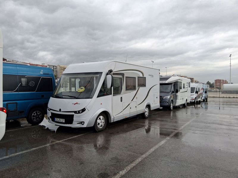 Der Sturm in der Nacht war sehr heftig und der Regen ebenfalls. Morgens treffen sich alle mal wieder vor den Autos und diskutieren die Lage. Die Wellen vor Tanger sollen Meter hoch sein, nicht schön. Um 9 Uhr kommt die Meldung, dass der Hafen um 10:30 Uhr wieder öffnen soll, wir lassen uns überraschen. Um 11 Uhr werden wir durch das erste Gate geschleust, dann stehen wir wieder 2 Stunden.
