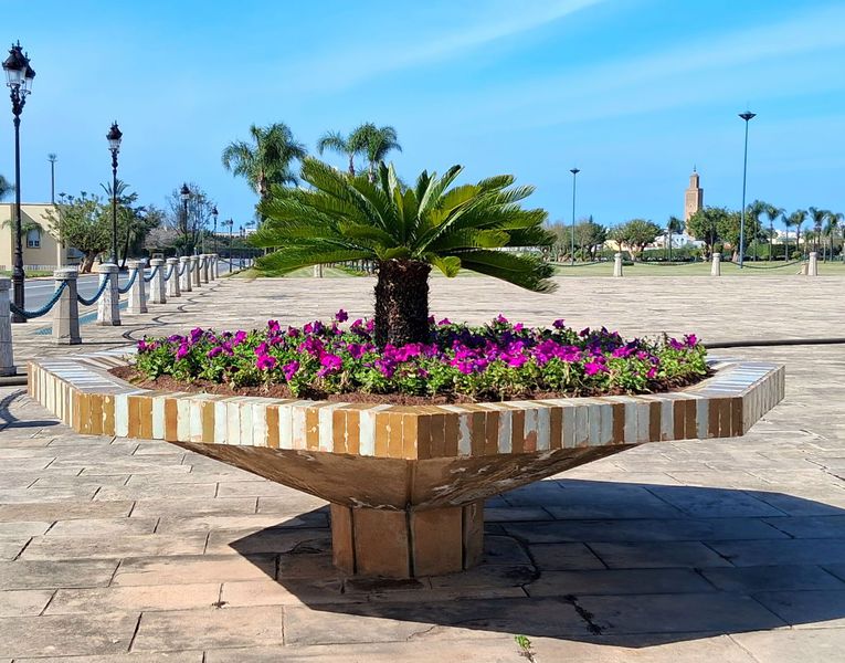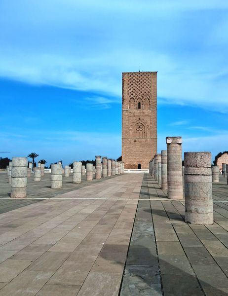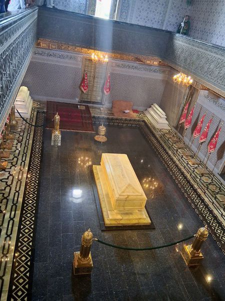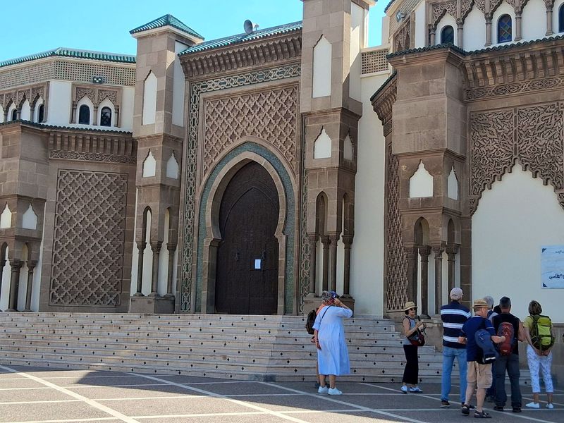 Nach einer Stunde Fahrt kommen wir in Rabat an. Als erstes wird die Ruine der Moschee mit dem Hassan-Turm und dem Mausoleum des Königs besichtigt. Die Moschee wurde bei einem Erdbeben zerstört, übrig geblieben ist die riesige Fläche mit über 300 Säulen und das Minarette von 40 Metern Höhe, was ursprünglich 80 Meter hoch war.