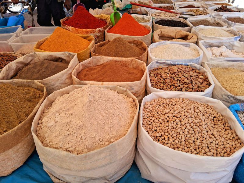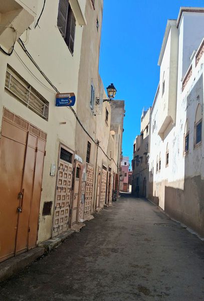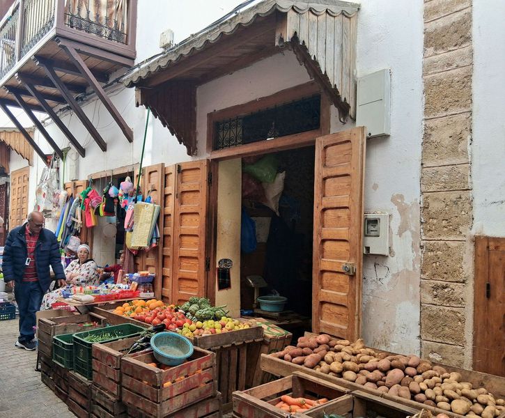 Weiter geht es zur Medina, der Altstadt von Rabat. Durch das jüdische Viertel mit schönen maurischen Häusern gelangt man in die Souks. In einer Straße werden Obst und Gemüse angeboten, eine Gasse ist voll mit Stoff- und Teppichläden, es gibt Schmuck, Haushaltwaren, Gewürze und alles, was man sich vorstellen kann.