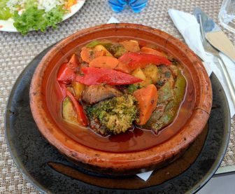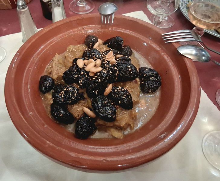 Abends essen wir im Restaurant des Campingplatzes. Es gibt eine „Ramadasuppe“, dann 2 Tajine-Gerichte und anschließend Obst. Das Ganze für jeweils 10 €.